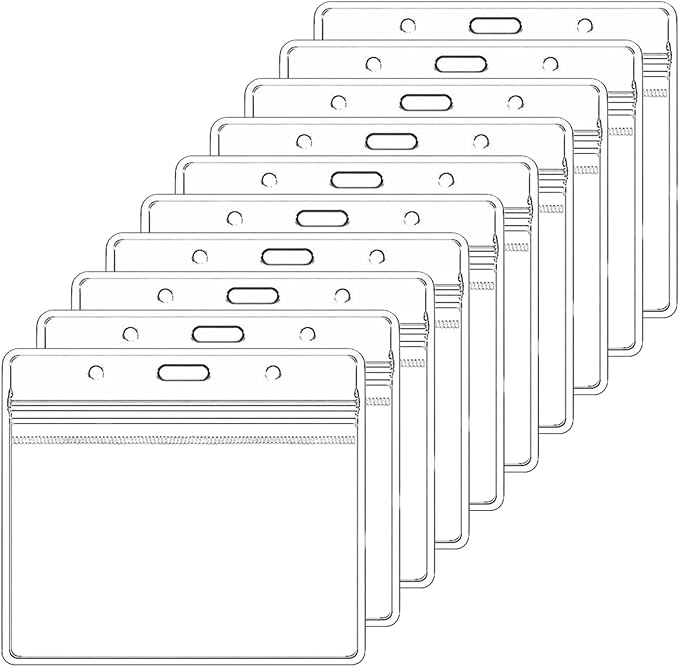 Description: Plastic ID Card Holder Clear Plastic Horizontal Badge Holder, Waterproof Name Tags Badge Holders, Badge ID Name Tag Plastic Sleeve Cover with Resealable Zip.