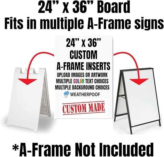 Custom A-Frame Sign Board 24 x 36 Inch Full Color Print Inserts and Text, Weatherproof Sandwich Board Signs for Outdoor, Sidewalk Sign for Business